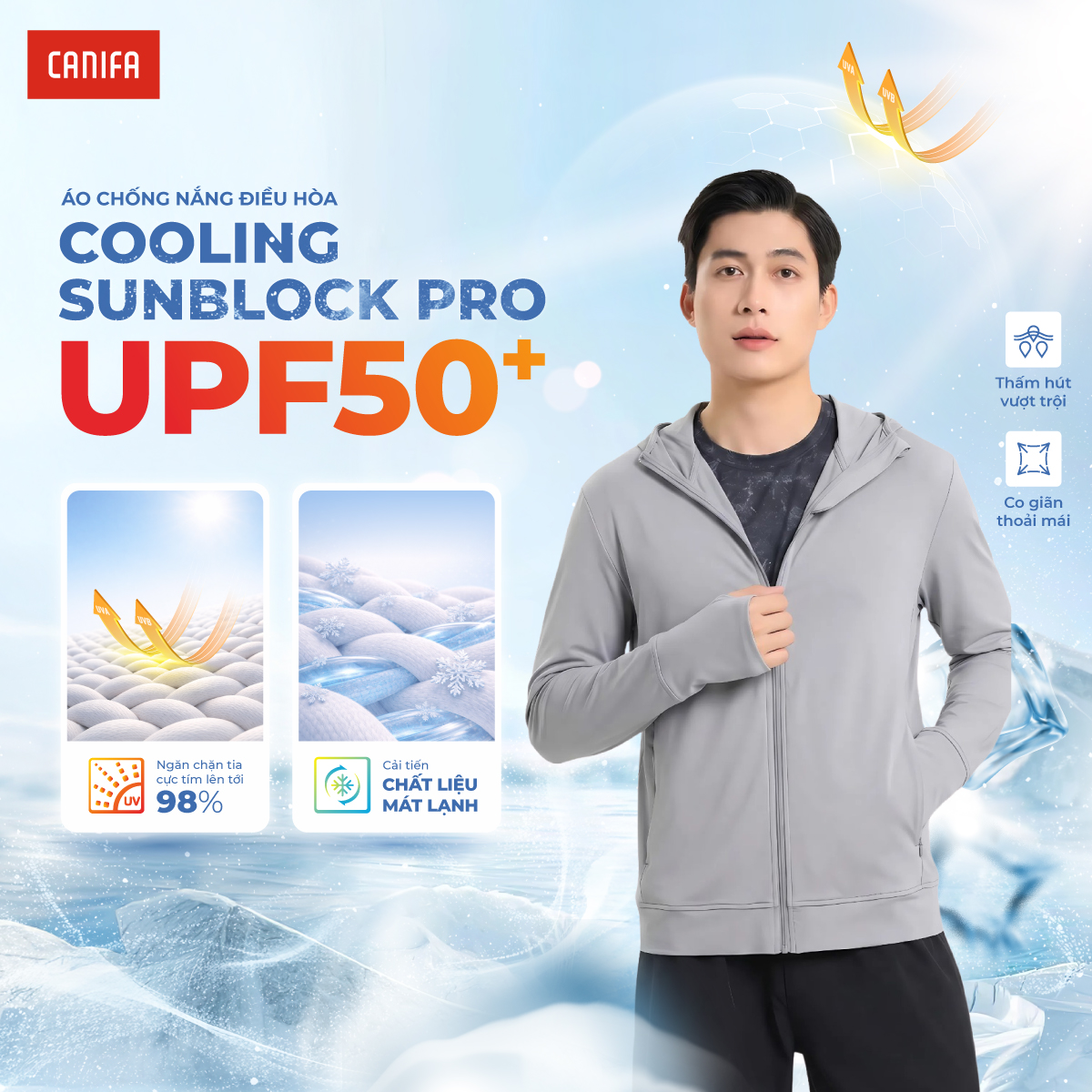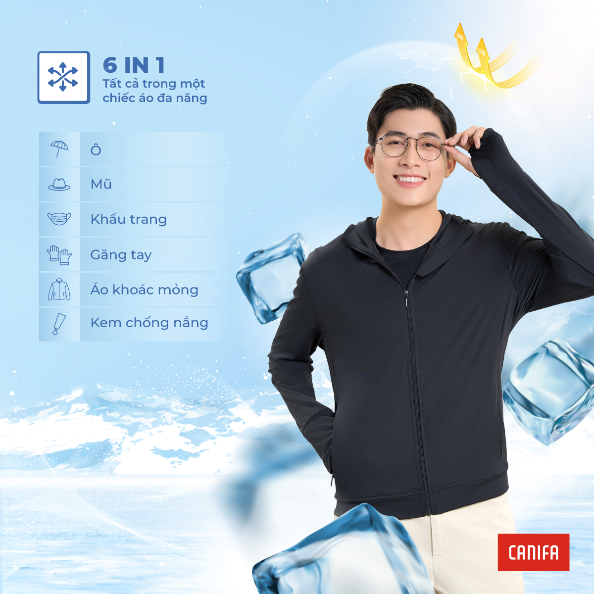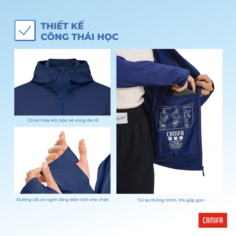 Áo khoác chống nắng chất liệu nylon spandex co dãn, mát lạnh. Thiết kế kéo khoác, dài tay, có mũ, có bao tay cùng tính năng Anti UV bảo vệ bạn toàn diện dưới ánh nắng mặt trời, ngăn chặn tối đa tác hại từ tia UV.