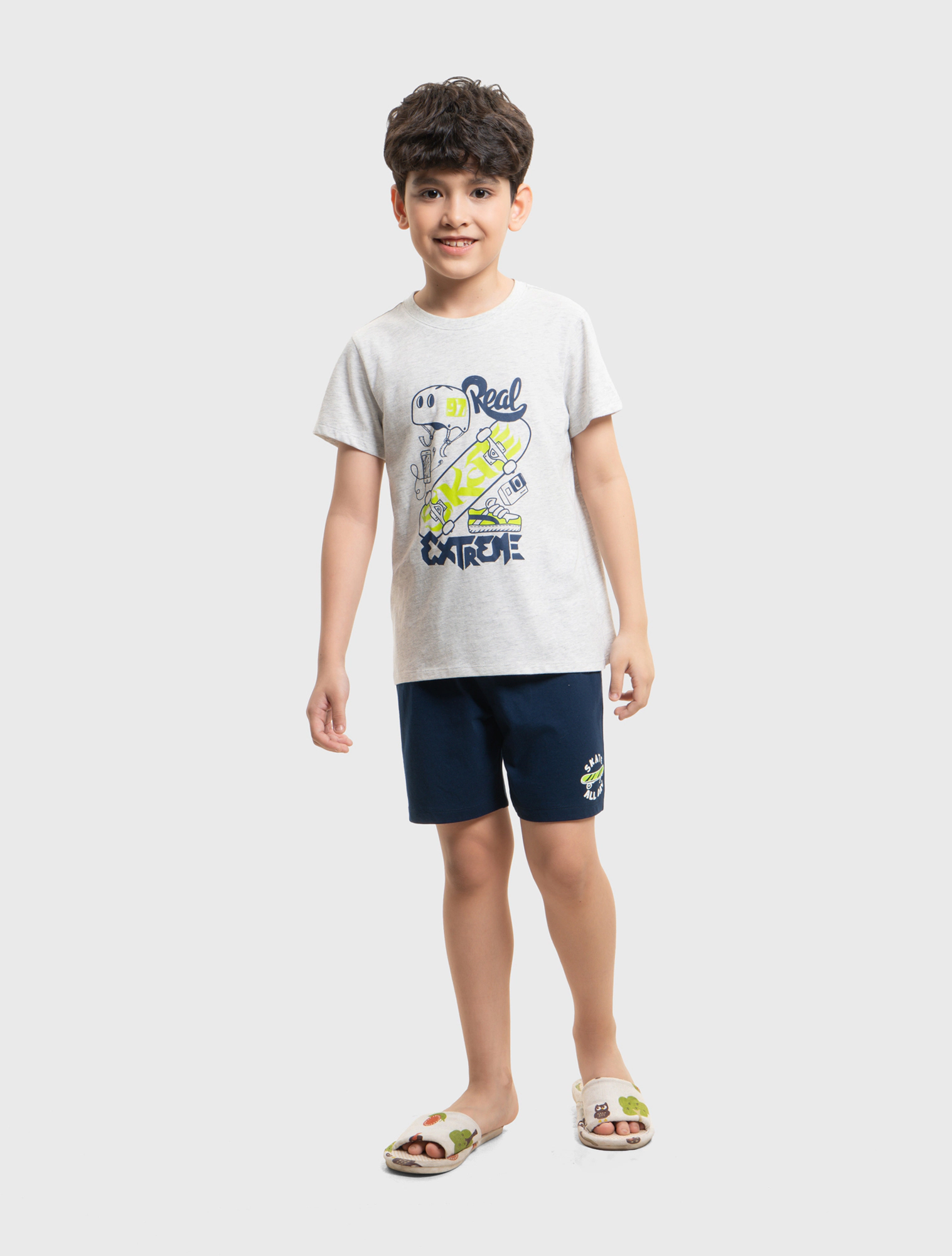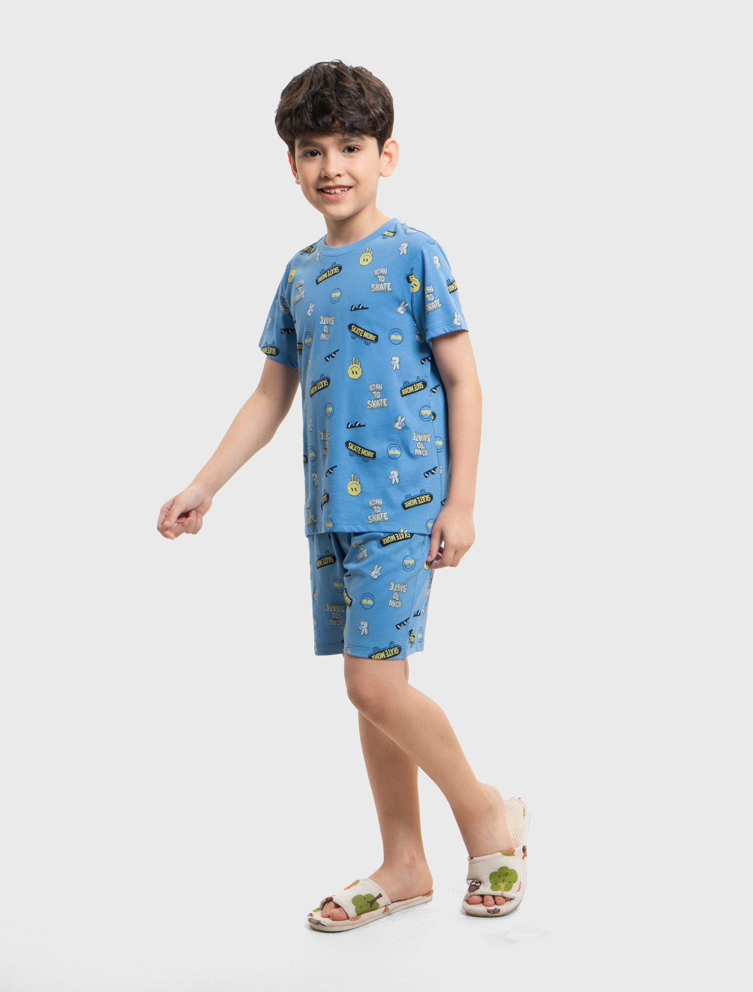 Pack 2 áo mặc nhà bé trai cộc tay chất liệu Cotton pha, phom dáng cơ bản dễ mặc, màu săc và hình in đa dạng.