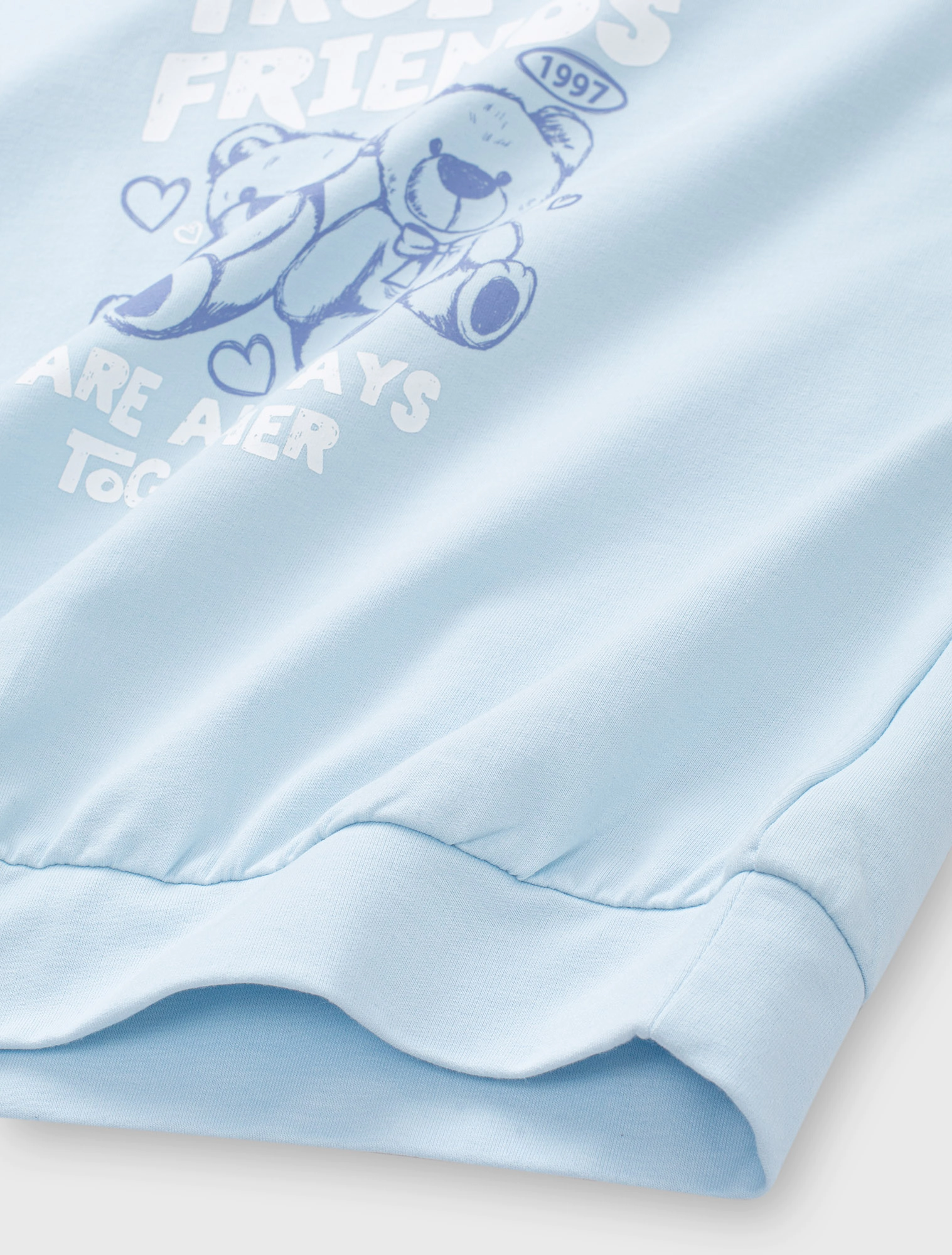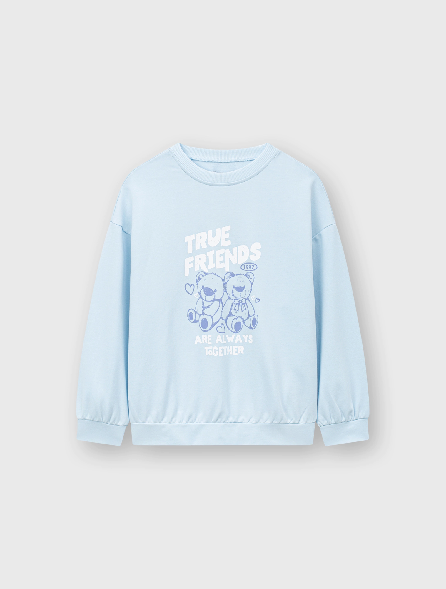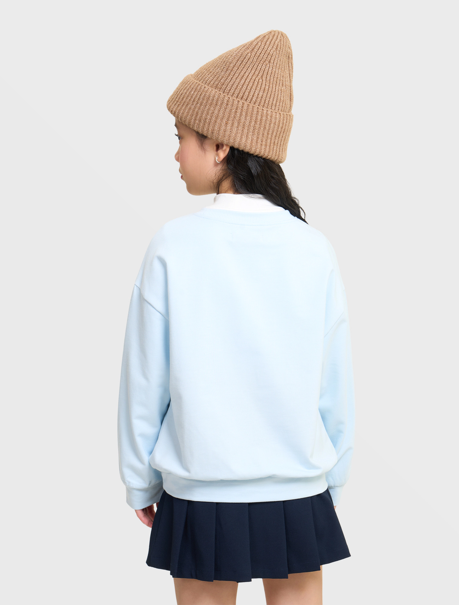 Áo nỉ vòng lông bé gái. Phom dáng cơ bản dễ mặc. Màu sắc tươi sáng, hình in đáng yêu phù hợp bé gái. Chất liệu Cotton pha mềm mại giữ ấm tốt