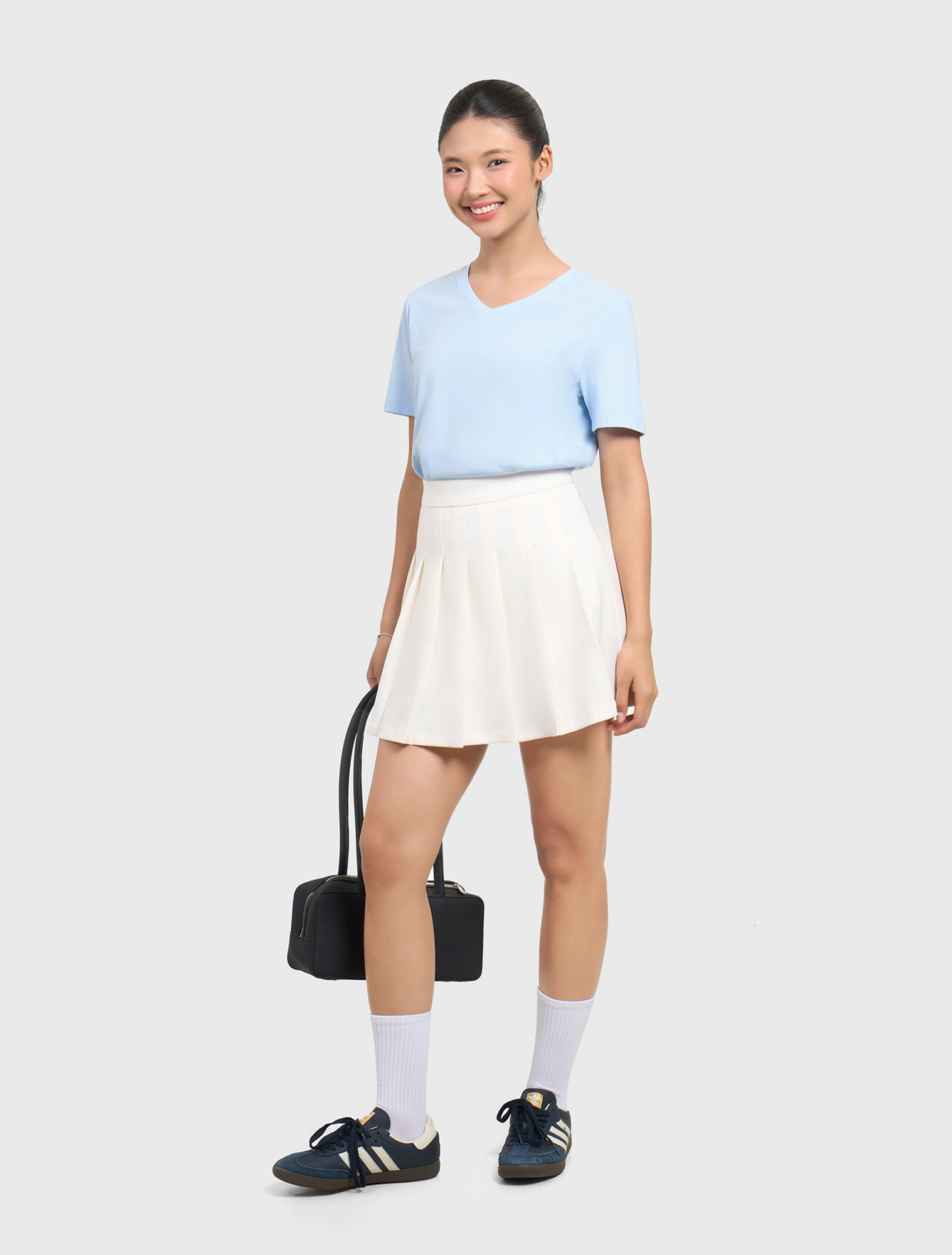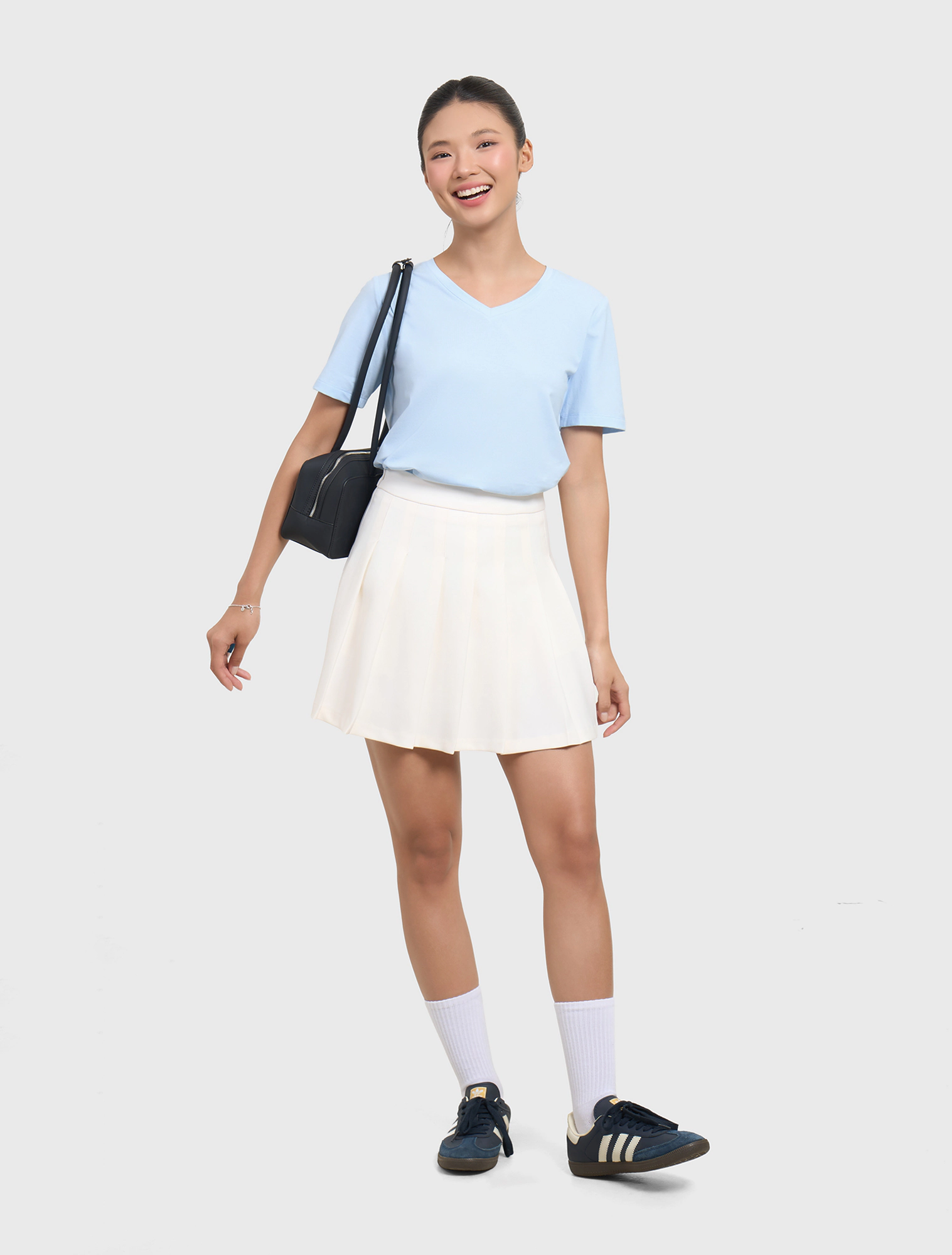 Áo phông nữ basic cổ tim, với bảng màu đa dạng, kiểu dáng đơn giản dễ mặc, phù hợp với nhiều hoàn cảnh sử dụng.