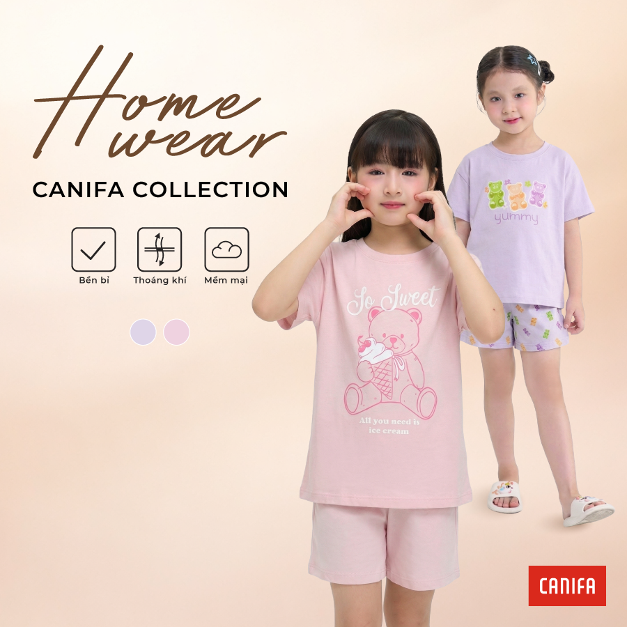 Bộ mặc nhà mùa hè bé gái phom dáng cơ bản dễ mặc.
