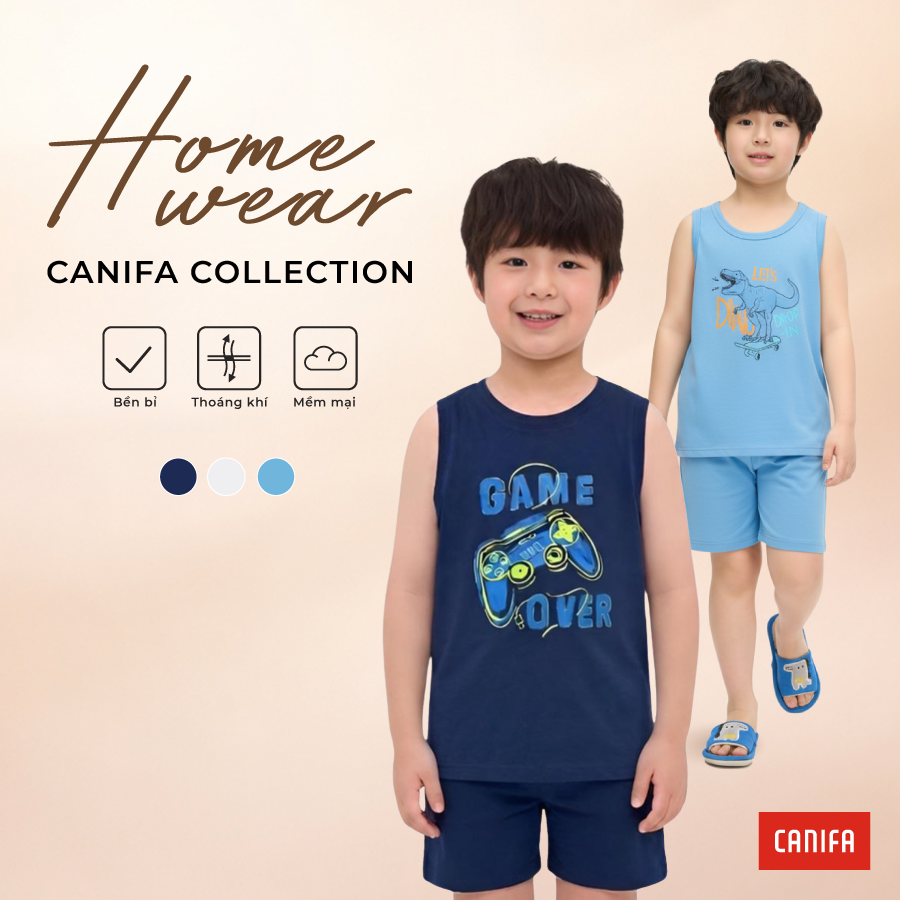 Bộ mặc nhà bé trai phom dáng sát nách dễ mặc, chất liệu cotton pha mềm mại, hình in đa dạng, phù hợp cho các bé sử dụng khi ở nhà và ra ngoài.
