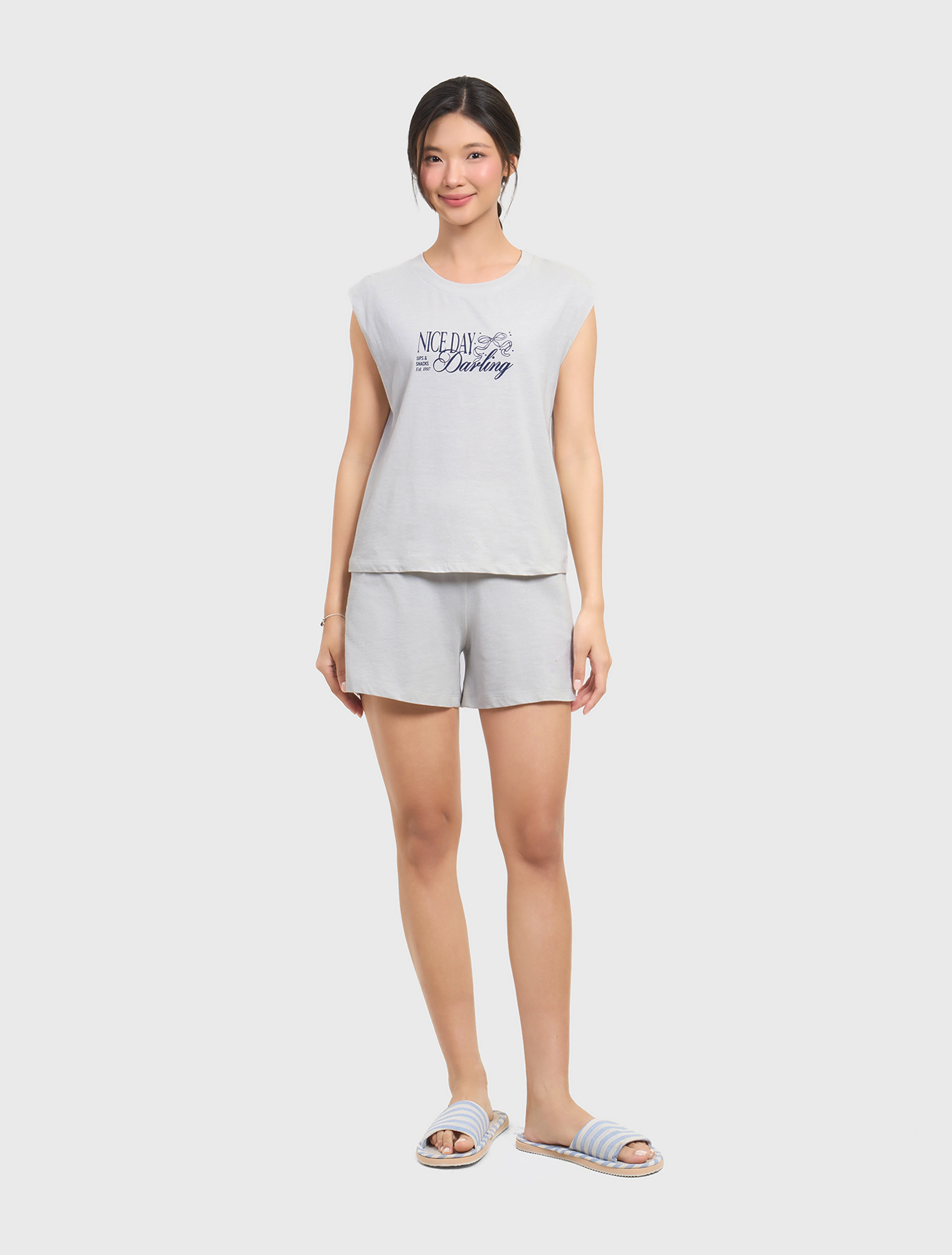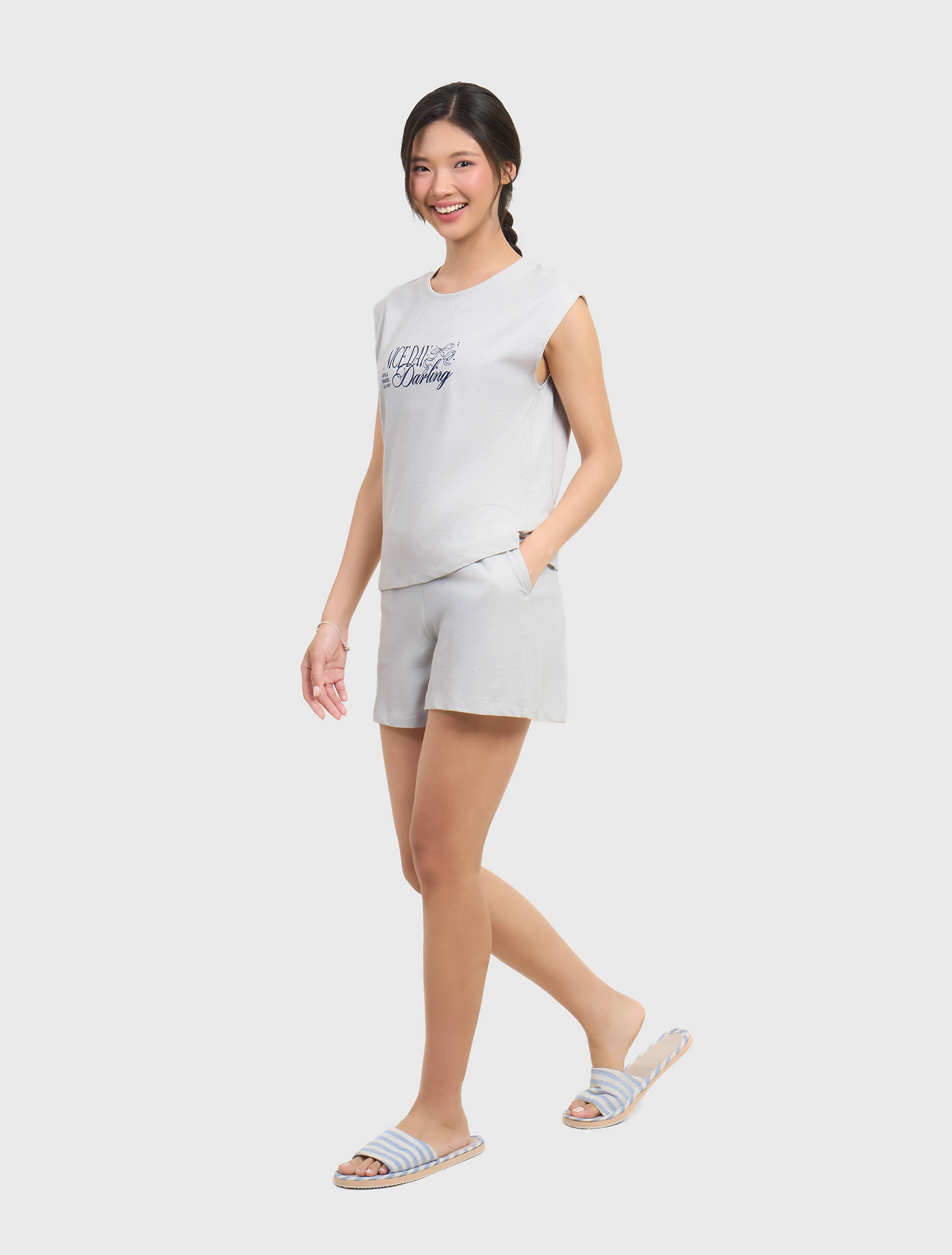 Bộ mặc nhà nữ giá tốt với thiết kế áo sát nách, quần shorts, phom dáng thoải mái tạo cảm giác dễ chịu khi sử dụng trong những ngày hè nóng bức.