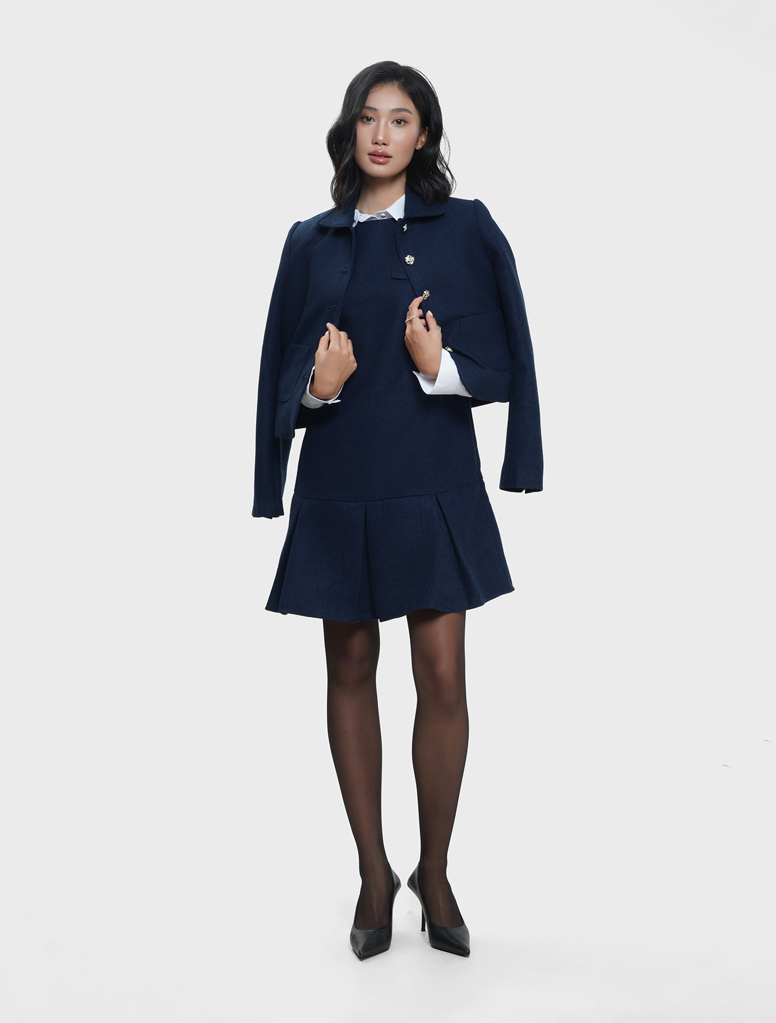 Váy liền nữ sát nách, dáng suông, chất liệu dạ ấm áp. Hoàn cảnh sử dụng linh hoạt công sở, dạo phố, lễ hội.